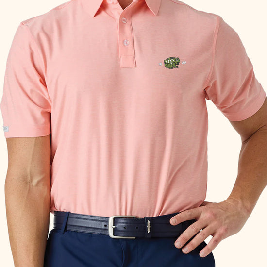 The Dodge Polo is Straight Down's best-selling performance polo for a reason. It’s made from a soft, stretchy cross-dyed heather fabric that feels great whether you’re on the course or in the office. The lightweight and breathable material is quick-drying, moisture-wicking, and offers SPF 50+ protection to keep you cool, dry, and shielded from the sun. Plus, the collar features their signature durable design that stays flat wash after wash, making it a solid choice for both play and everyday wear.