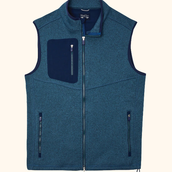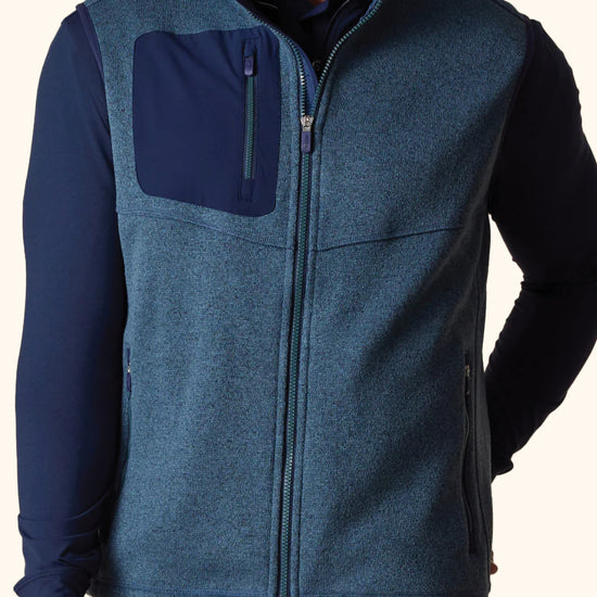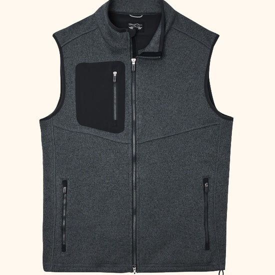 The Carmel Vest is crafted from sweater knit fleece, drawing inspiration from mountain apparel. It has a bonded chest pocket and a cozy fleece interior, providing warmth without being too heavy. With zippered hand pockets for added convenience, it’s a comfortable and practical choice for cooler days on the course.