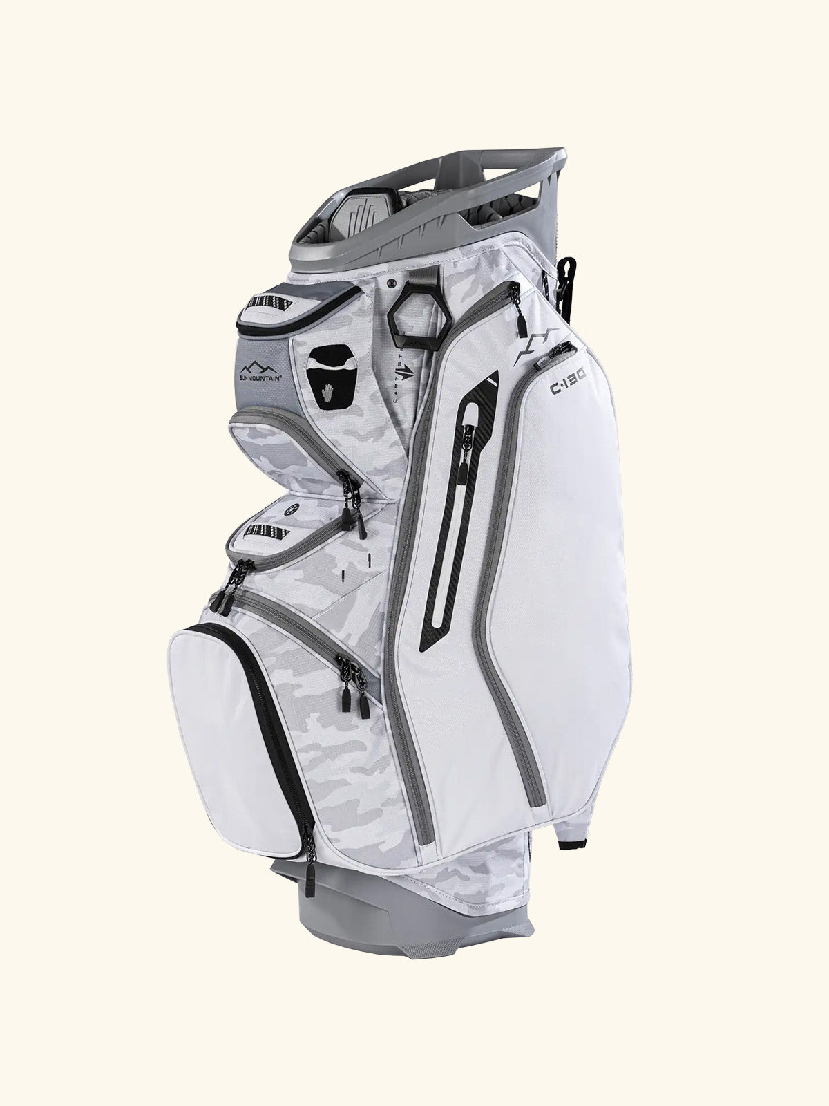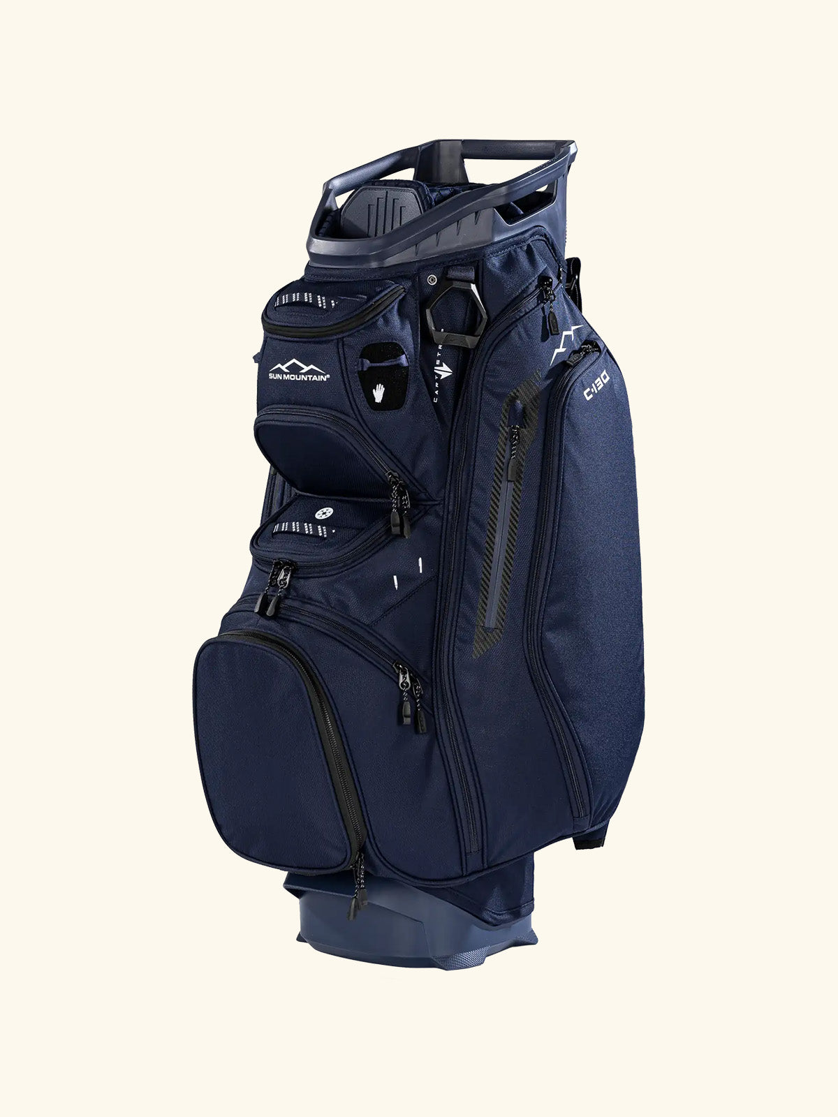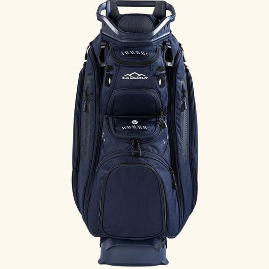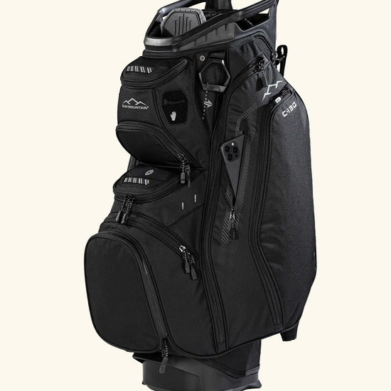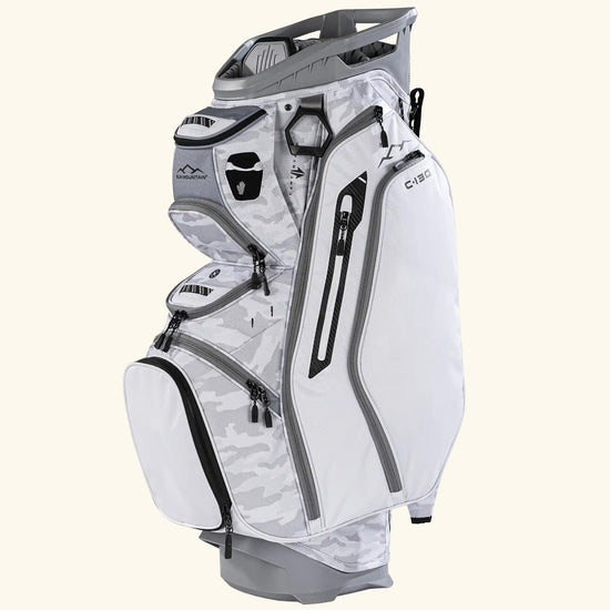 The C-Series C-130 Cart Bag continues its legacy as an industry leader with nearly two decades of refinement. It offers eleven strategically designed pockets, including two spacious apparel compartments, a velour-lined rangefinder pocket with a magnetic closure, and an insulated cooler pouch to keep beverages fresh. Fourteen individual dividers run the entire length of the bag, keeping clubs organized and easily accessible. The innovative Smart Strap System secures the bag to a cart without hindering pocket access, providing convenience and functionality every round.